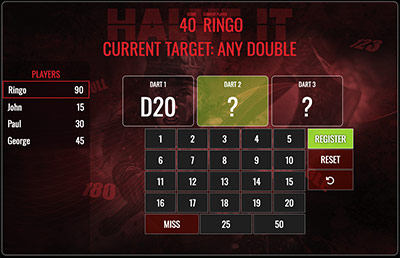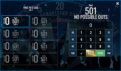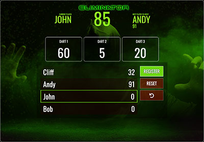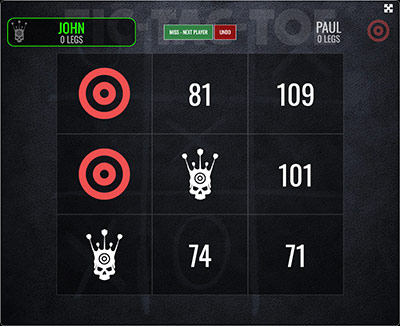 PLAY GAMEThe classic -01 game in a multiplayer version. Set your individual or general starting score to play 501, 301, 170 or whatever you'd like. If you are more than 2 players you can select if you want to play League mode where the game continues until all players have finished.