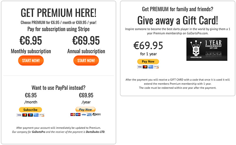 1) Cancel your existing monthly subscription either following the link on your payments page to edit your subscription or by sending an email to info@godartspro.com along with your username or email address used on GoDartsPro, and we’ll cancel it for you.